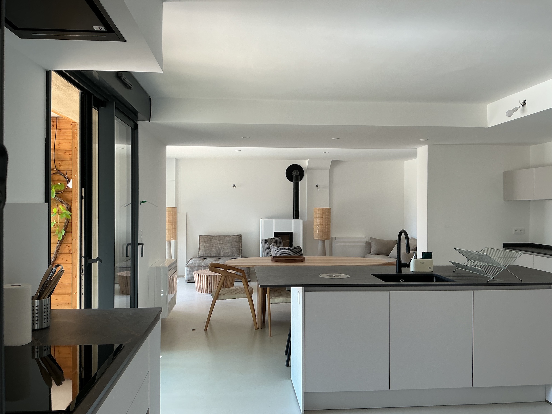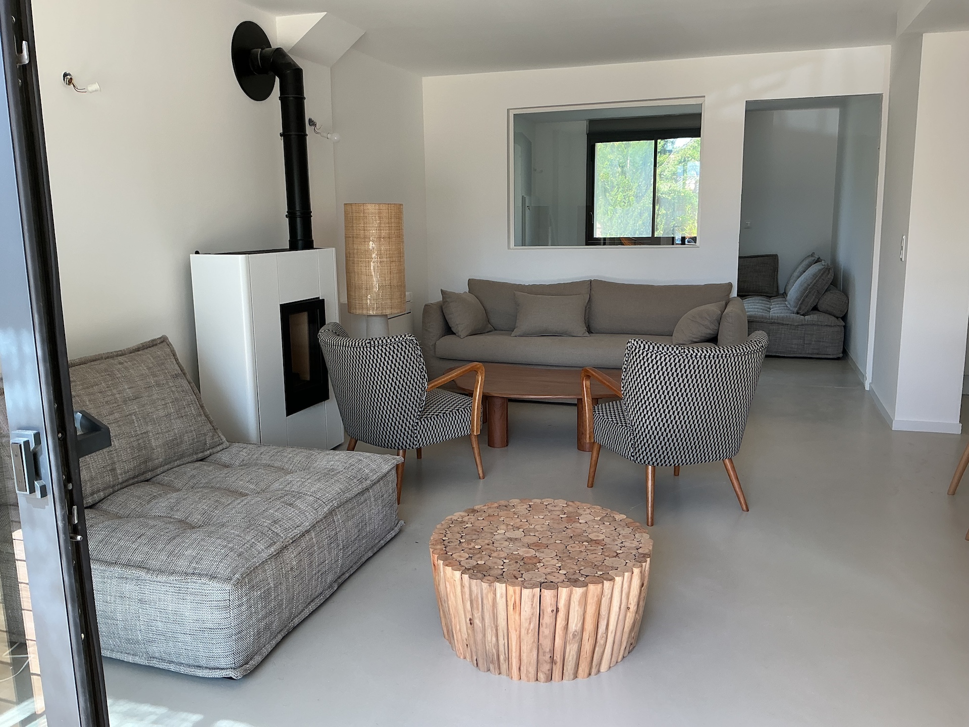 Prestations : rénovation totale, ascenseur, béton ciré, aspiration centralisée, climatisation, poêle à granulés, linge fourni, ménage hebdomadaire, fibre internet, conciergerie 7j/7.